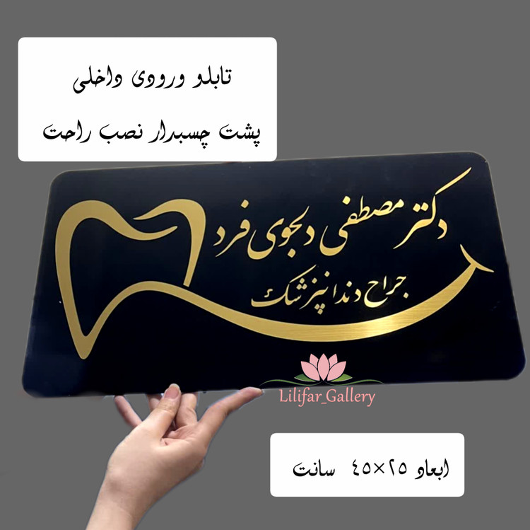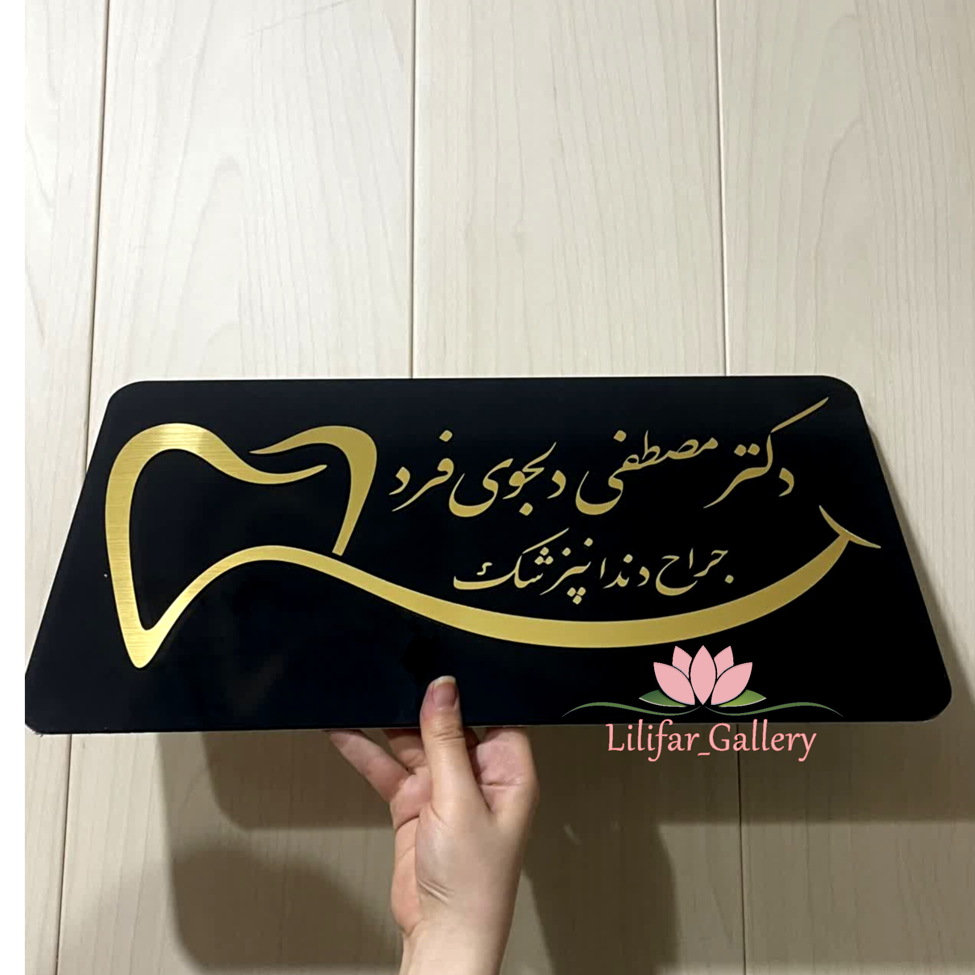 تابلو ورودی داخلی جنس پلکسی و مولتی طلایی مناسب مطب و کلینیک ها